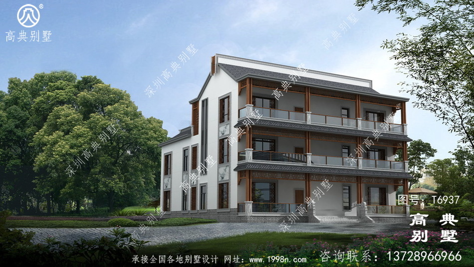 外形设计精致的新中式三层别墅